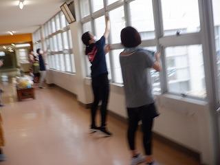 校内では、子ども達が普段できない窓ふきやトイレ掃除を中心に清掃してくださいました。どの階の窓も汚れていて、雑巾が真っ黒になっていました。1番汚れのひどいトイレは、環境部員の皆様が担当してくださっていました。
