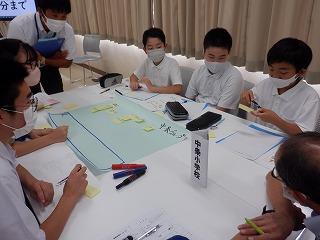 各校の報告の後は、校区4校で取り組めることやルールについて協議し、まとめました。進行役の生徒会執行部の生徒たちは、上手に進行したり発表したりすることはもちろん、小学生への対応が温かく、さすが南中学校の生徒と感心しました。