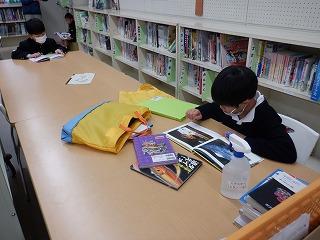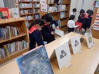 12月20日(火)1年2組の子ども達が、図書室で冬休みの本を選んでいました。冬休みは本を3冊借りることができるので、どの本を借りようか嬉しそうに選んでいました。