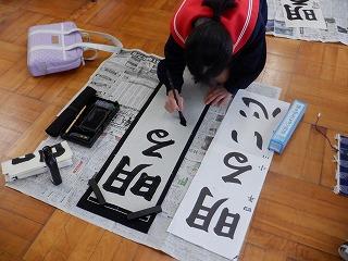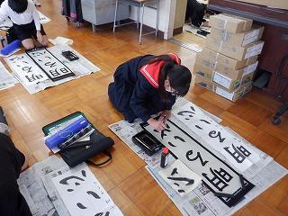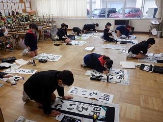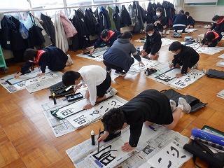 12月20日(火)4年生が、合同で書き初め練習に取り組んでいました。4年生の今年の課題は、明るく頑張る4年生にぴったりの「明るい心」です。子ども達は、筆使いに気を付けながら、丁寧に書いていました。