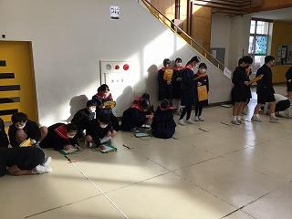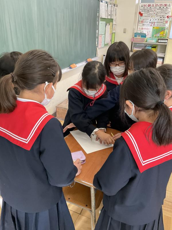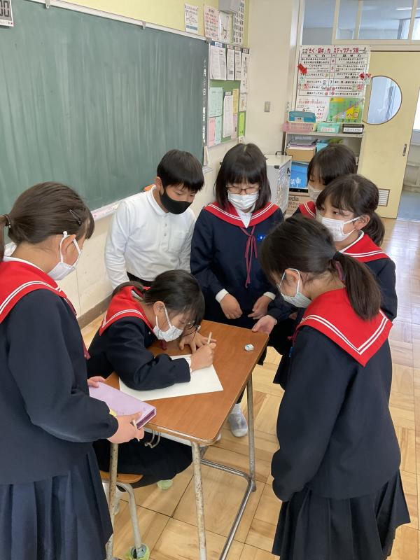 3年生の卒業を祝う会実行委員が発足し、さっそく実行委員たちは、出し物の劇をどんな内容にするか、3年生全員にアンケートを協力して作成していました。休み時間には、自主的に集まり、積極的に活動している姿に、頼もしさを感じました。