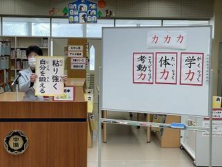 生徒指導からは、冬休み中は自己コントロール力を高め、安全に過ごしてほしいと話がありました。規則正しく生活し、家族で楽しい時間を過ごす冬休みにしたいですね。
