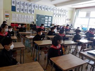 12月23日(金)3限目に、2学期の終業式を行いました。学校長からは、「学力・体力・考動力」の付けたい3つの力について2学期を振り返り、3学期の目標に繋げる話がありました。大雪にも負けずに登校してきた子ども達は、目線を合わせてしっかりと話を聞き、よい姿で2学期を終えようとしていました。