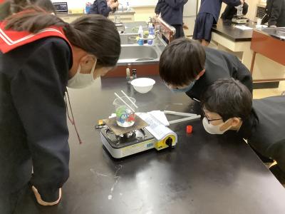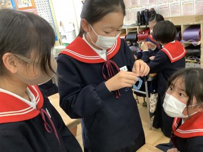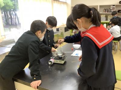 5年生の理科の授業では、食塩やミョウバン等を用いて物のとけ方について学習してきましたが、12月21日(水)から12月23日(金)にかけて、学習したことを生かしてミョウバンの結晶づくりを行いました。子ども達は、ミョウバンを溶かす温度や量に気をつけながら、慎重に結晶づくりを行い、完成した結晶を見た瞬間には「おー!」「すごい!綺麗!」と喜びの声を上げていました。