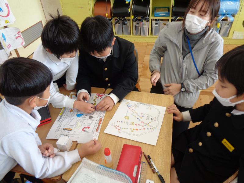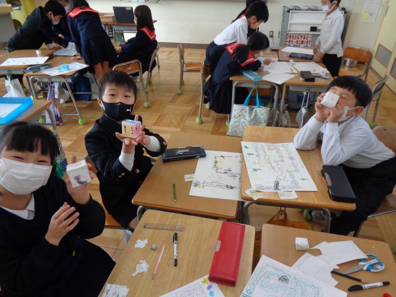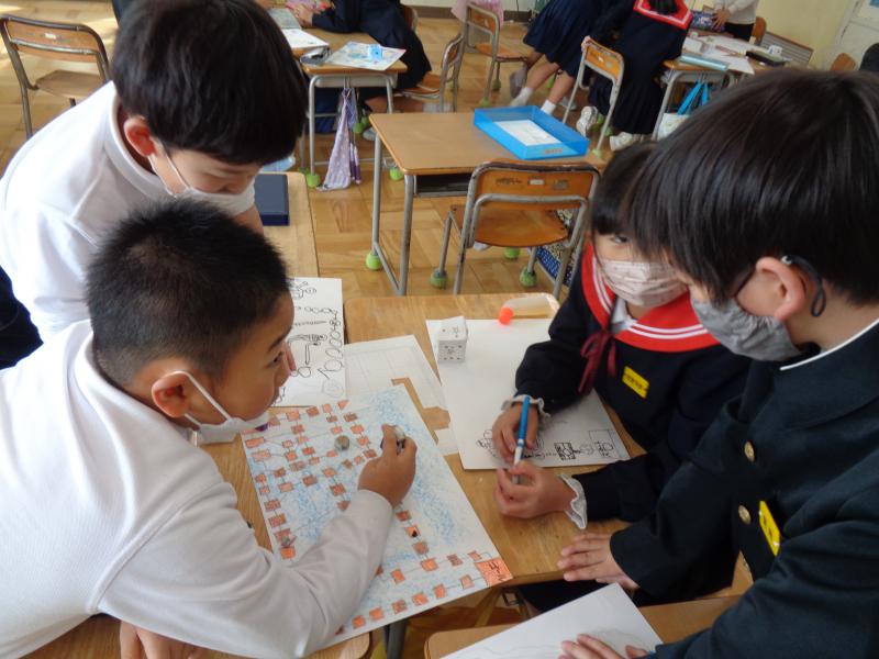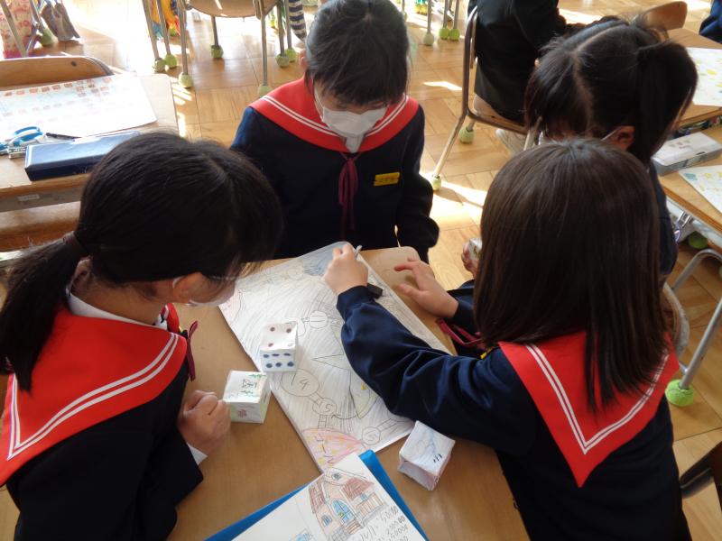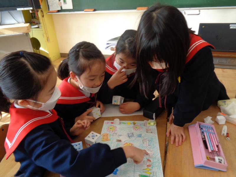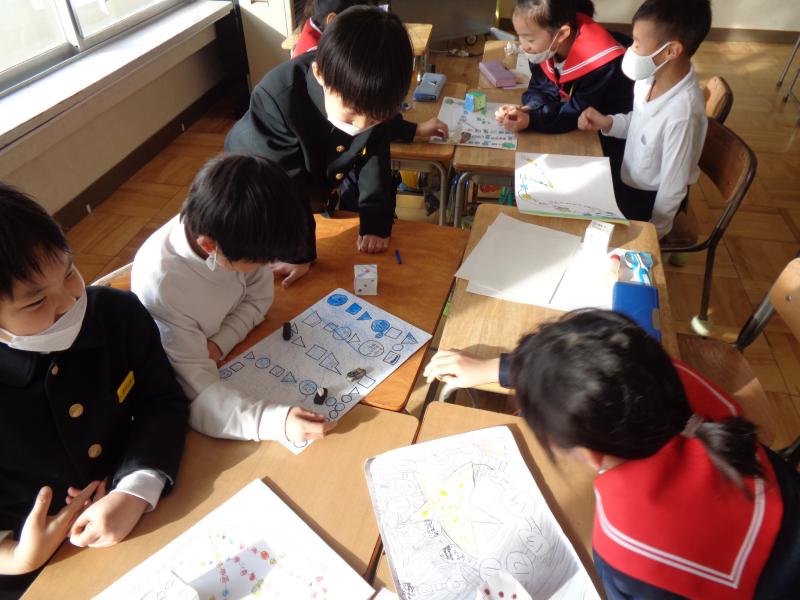 12月23日(金)2年2組の子ども達が、図工科で、みんなで作った『すごろくゲーム』を楽しみました。すごろくの言葉には一人一人の工夫があり、クラスのみんなが積極的に参加できるとてもよい時間となりました。