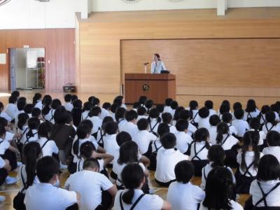 久し振りに全員が体育館に集合して、全校集会を行うことができました。