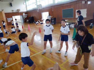4年生は、よさこいの練習です。よさこいは激しい動きなので、十分な休憩や水分を取りながら練習しました。