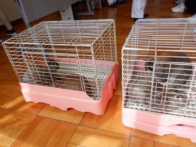 中条小学校には白うさぎが1羽しかいないため、他校からうさぎを4羽借りてきました。