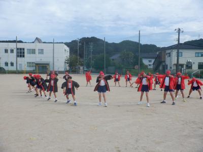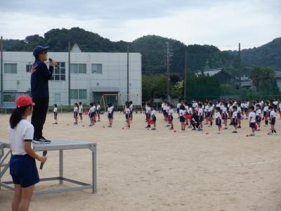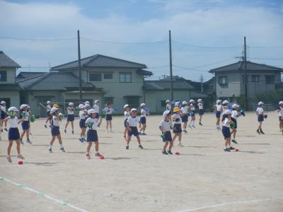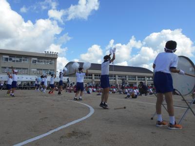 25日(月)は、天候にも恵まれ、運動場で練習することができました。