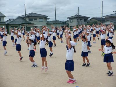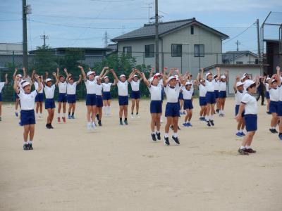 体操係は、入場門・退場門を準備した後、ラジオ体操と整理体操を実際にしてみました。