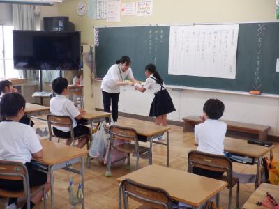 実習生からも、子どもたちにメッセージの書かれたミニ賞状が手渡されました。