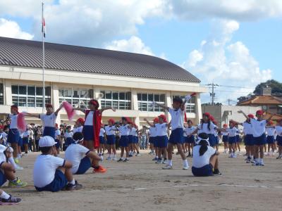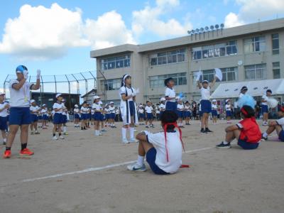 応援練習を運動場で行うのは初めてでしたが、赤組も白組も、応援団を中心に