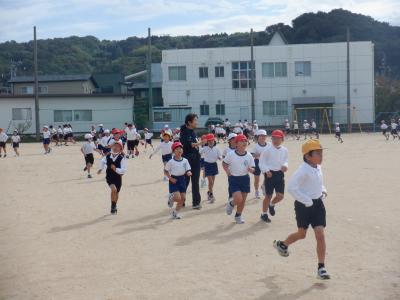 今日も、さわやかな秋晴れとなり、子どもたちはゴーゴーランニングに取り組みました。