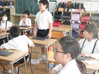 この日、5年1組では国語「よりよい学校生活のために」の学習でタブレットを活用しています。