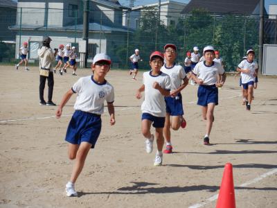 先週学年閉鎖だった5年生も、登校してきた子どもたちは元気で、一所懸命に走っていました。