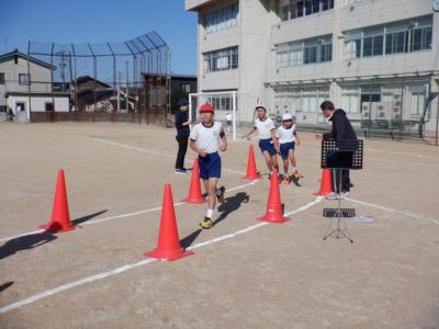 1年生は、初めてのマラソン記録会です。走る距離が短く、はじめから勢いよく走る子が何人もいました。