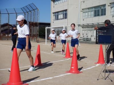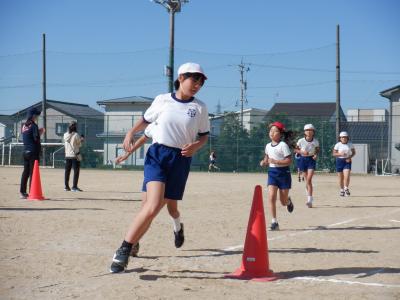 次は4年生です。一人一人がペースを考えて走り、男女とも、大きな差がつくことなく走り切りました。