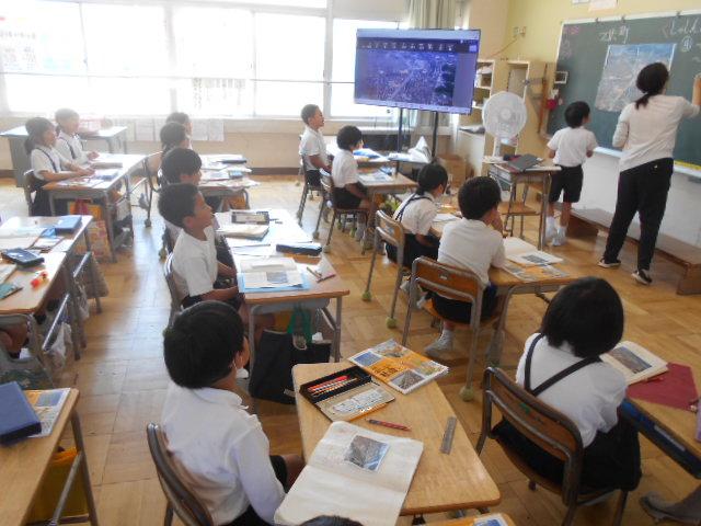 学校に帰って来てからは、これまでに行ってきたコースと今回行ったコースを比べて気付いたことや思ったことを話し合いました。山や工場、お店の数の違いなどのたくさんの意見が出て学びが深まりました。