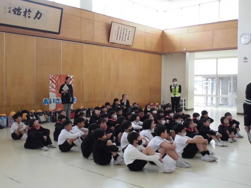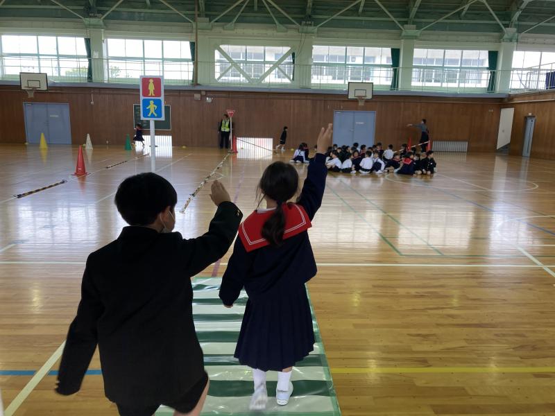 津幡町交通安全協会の方の指導のもと、交通事故防止のため、一人ひとりが「交通ルールを守り、正しい交通マナーを実践する」ことを心がけ、かけがえのない命を大切にすることを学びました。