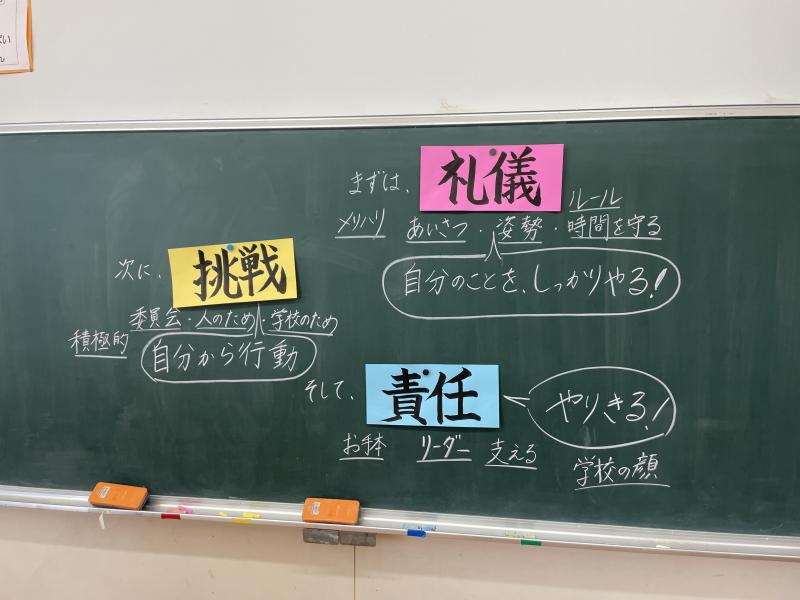 1年間「礼儀・挑戦・責任」を通して大きく成長できるよう,頑張りたいと思います。