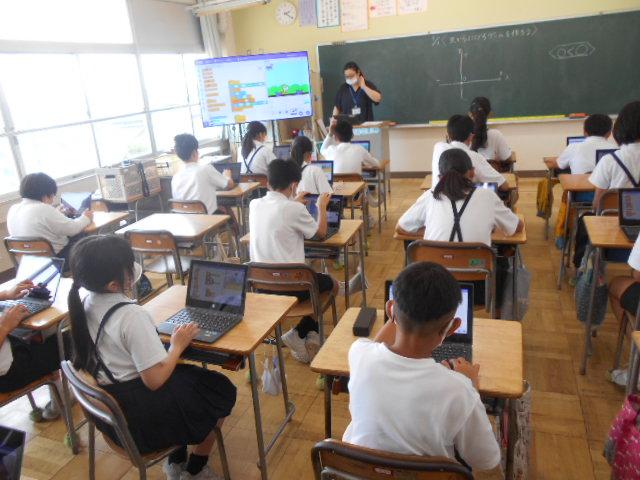 5・6年生は、情報教育の講師の方から、虫からにげろゲームを作ることを通して、