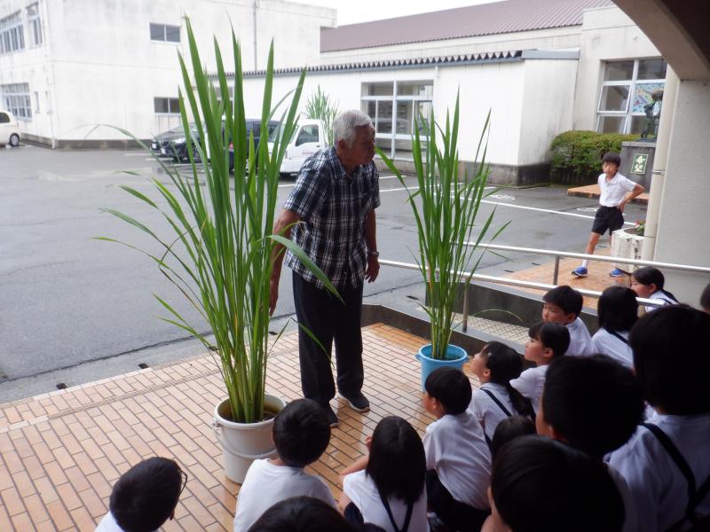 子供たちは,本物のまこもを目の前にして大きさに驚いていました。また,手で触り「予想と違った!」と反応をしている児童もいました。これからは,3年生が力を合わせて大切に育てていきましょう。