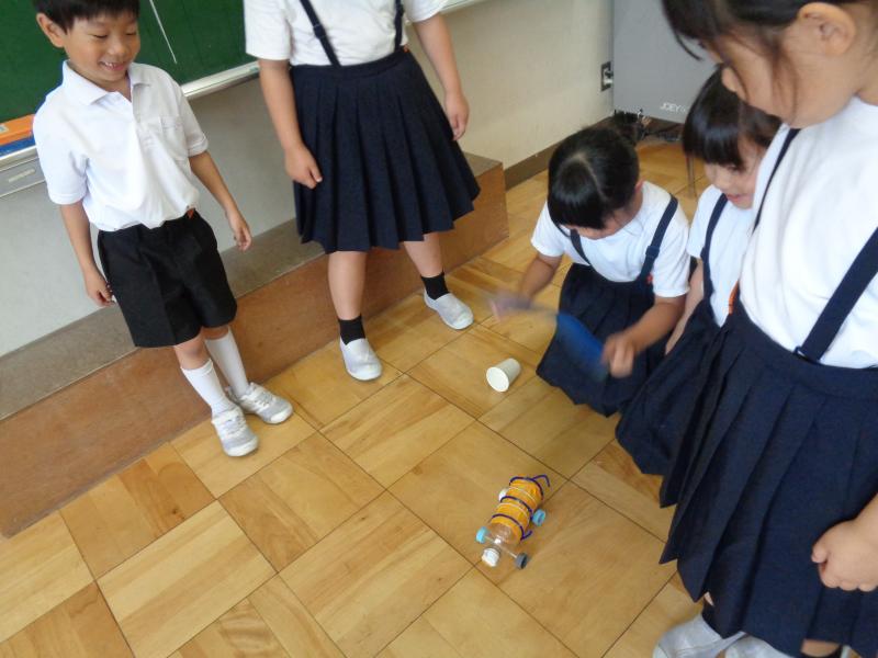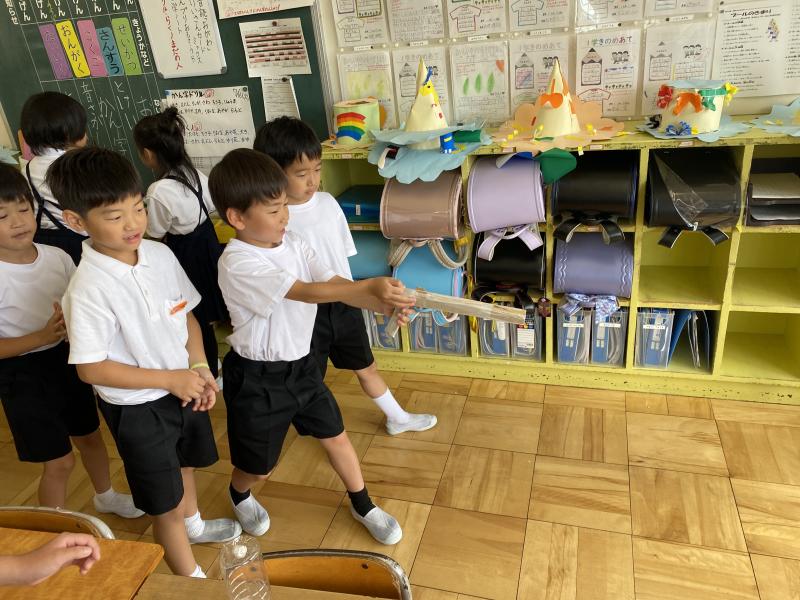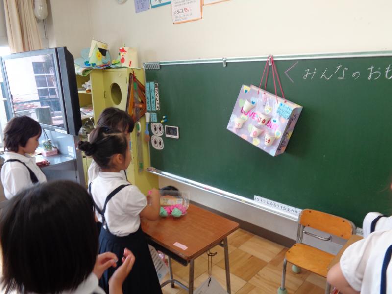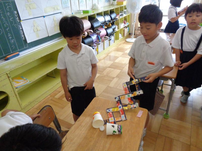 2年生は生活科の単元「せかいで一つわたしのおもちゃ」で身近にあるものを使って動くおもちゃを作り、お祭りの縁日のおもちゃ屋さんのようにして各クラスのおもちゃを楽しみました。ゴム鉄砲や吹き矢などゴムや風、空気の力を利用したおもちゃや的当てゲーム、万華鏡、スノードーム、ブローチなどのおもちゃがあり、みんなで楽しく活動できました。