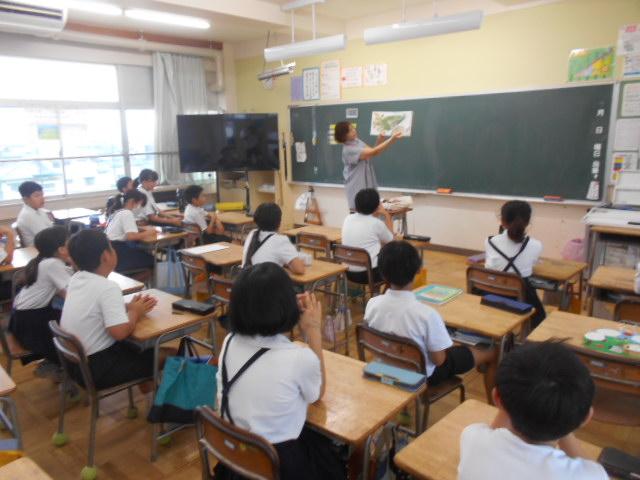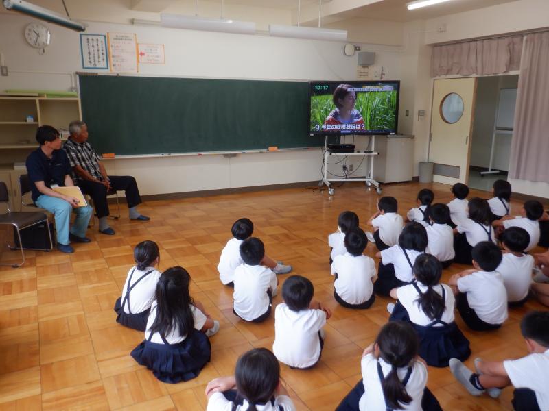 3年生は,総合の学習で津幡町の特産品「まこも」について調べたり,まとめたり,発表したりしてきました。今回は,まこもを育てる農家の方をお招きし,まこもについてのお話を聞きました。