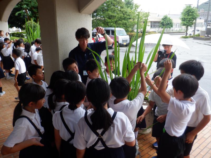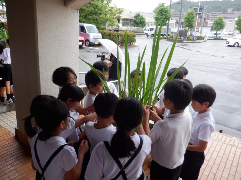 子供たちは,本物のまこもを目の前にして大きさに驚いていました。また,手で触り「予想と違った!」と反応をしている児童もいました。これからは,3年生が力を合わせて大切に育てていきましょう。