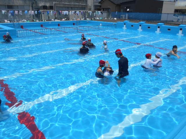本校では,水の事故に遭わないため,水の事故から命を守るために,各学年で着衣泳を実施しました。
