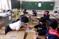5年生、始まったばかりの家庭科の授業で、早速お茶入れに挑戦しました。