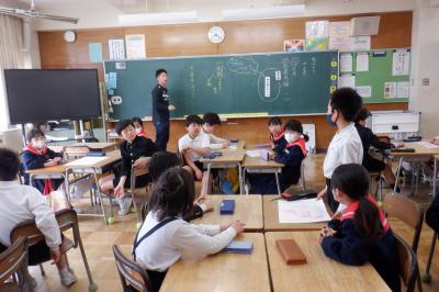 津幡警察署の方からは,「止まれ」の標識で一旦止まることや,左右・後方を確認すること,横断歩道は降りて渡ることなど安全な自転車の乗り方と自転車に乗るときの交通マナーについて教えていただきました。子供たちは,警察署の方から教えていただいたことを守り,安全に自転車に乗ることができていました。