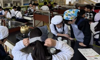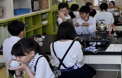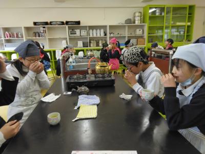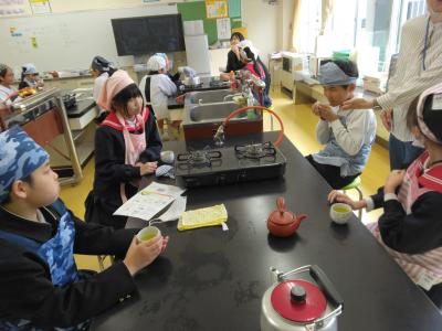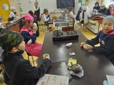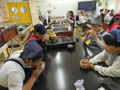 5年 家庭科 お茶を入れる実習で お茶の香りと味を楽しみました