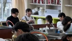 5年生、始まったばかりの家庭科の授業で、早速お茶入れに挑戦しました。
