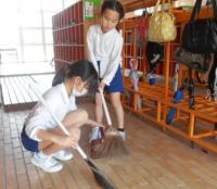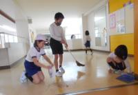 6年生は,掃除場所や掃除用具を確認したり自分のグループの分担を考えたりと事前に準備をしてくれていました。また,リーダーとして掃除の仕方やごみの取り方を優しく教える姿がありました。下級生も優しく教えてもらってうれしそうでした。