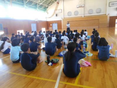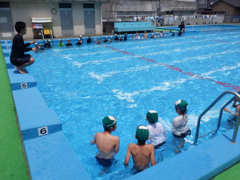 プール学習は,泳力を高めるとともに,水難事故から大事な命を守るための力を身に付けることもめあてとしています。今年も,全校のみんなが安全にプール学習に取り組めるように,しっかりと先生の話を聞きプールのきまりを守っていきましょう。