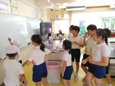 6月30日(月)は,絶好のプール日和でした。3年生がルールをしっかりと守り,けのびやバタ足の練習をしていました。先生が笛を吹いたり指示を出したりした時に,ペアを組んで安全を確認する「バディ」を取り入れて行動できていました。少しでもレベルアップし,次の学習につなげてほしいです。