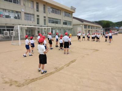 夏の日差しの下,待ちに待ったプール。子供たちは,ワクワクした気持ちで今日の日を迎えました。安全な水泳学習になるように、プールのきまりを確認したり,ペアで体調等を確認する方法(バディーシステム)を練習したりしました。