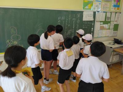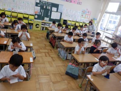 3分間がんばった後は,各学年の台紙にシールを貼り嬉しそうにしていました。