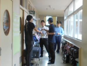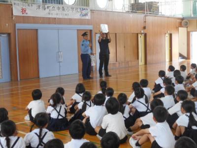 6月25日(水)に防犯避難訓練を行いました。この訓練は,不審者が校舎内に侵入した場合の避難の仕方を身に付けるために行っています。今回は,津幡警察署の方々にご協力をいただき,不審者が授業中に運動場出入口から侵入し,南棟を移動するという設定でした。子供たちは,教室(内鍵をかけて)で気配を消しじっと隠れることができました。また,教職員においては,子供たちの安全を最優先させながら警察の方々が到着するまでの時間をかせぐ方法を学ぶことができました。