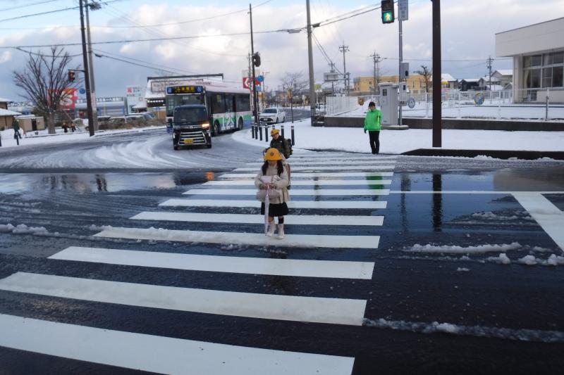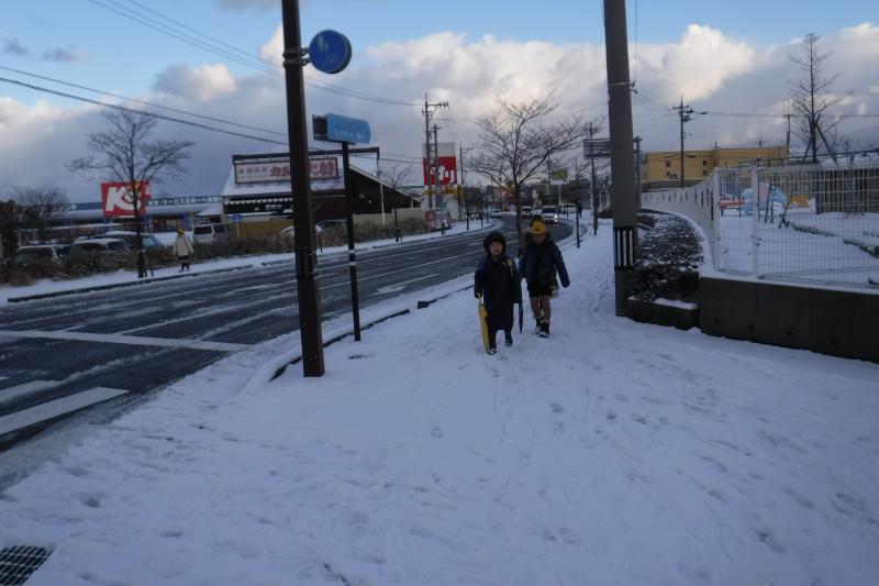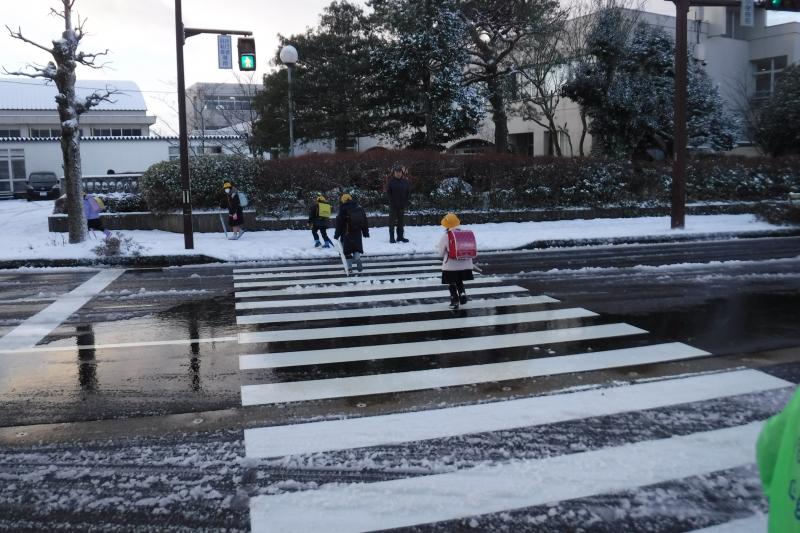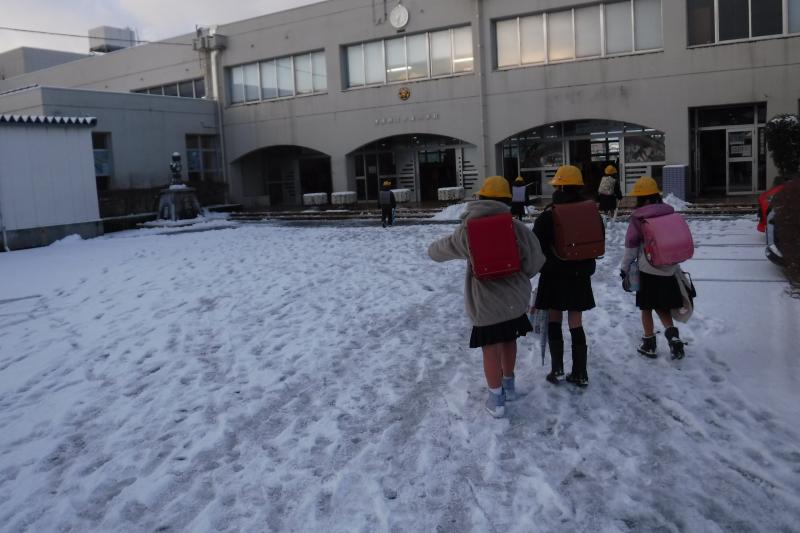 今週から寒さが一層厳しくなり,雪も降り続いています。いつもよりも歩きにくい道ですが,子供たち安全に登校していました。