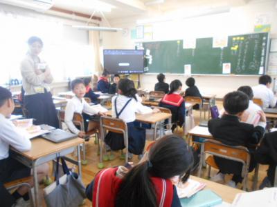 火曜日に津幡中学校の栄養教諭の方から食育について学習しました。3年生は「箸の使い方」,4年生は「おやつの食べ方」について教えていただきました。