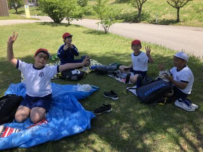 5月2日(木)5・6年生は遠足で七塚中央公園へ行ってきました。かほく市の公園のため電車を使って移動することもあり,「5、6年生として責任をもって楽しい遠足にしよう!!」というめあてを立てて行いました。