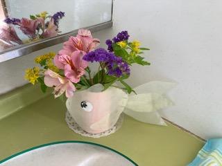 6月21日(火)今日は、夏至。暑い日が続いていますが、涼しげなお花で気持ちが癒されます。お花ボランティアの中西さん、いつもありがとうございます。
