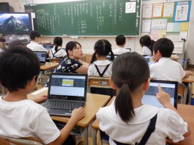 1年生は、国語「うみのかくれんぼ」の学習でクロームブックを使っていました。