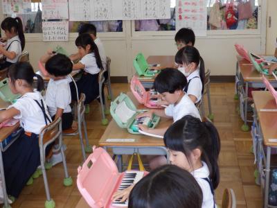 1年生も、クロームブックの操作にずいぶん慣れてきたようです。