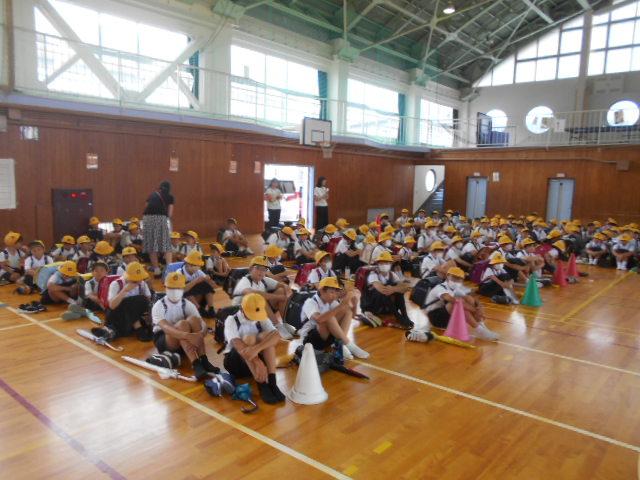 体育館で地区のグループごとにスムーズに並ぶ姿、先生の話をしっかりと聴く姿、無駄なおしゃべりをせずに行動する姿、どれをとっても素晴らしい中条っ子でした。