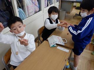 11月17日(木)1年生が、生活科の時間に秋の木の実や木の葉を利用して作成したおもちゃを使って「秋のくりぐりまつり」を行いました。グループごとにお店屋さんを開き、店員さんとして元気な声で呼び込んだり、お客さんになって遊びを楽しんだりしていました。