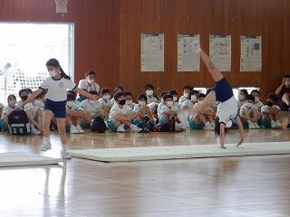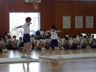 6月1日(水)町器械運動交歓会が、本校体育館で行われました。レベルを上げた技ができるようにと高みをめざして毎日練習してきた4年生。本番では、練習の成果を発揮し、どの子も堂々とした声と演技で発表していました。一緒に頑張ってきた友達と気持ちをそろえて演技し、全員で集中してやり切る姿が、とっても素敵でした。