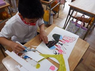 5月18日(水)2年2組の子ども達が、図工の時間に仕上げた透明うちわに光を通して幻想的な模様を作っていました。光を通す材料で作った透明うちわなので、太陽の光を当て友達と重ねると、いろいろな形や色に変化するので、それぞれの見え方の変化を楽しんでいました。